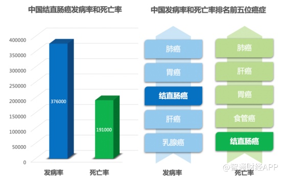 其中,结直肠癌发病率居国内恶性肿瘤发病率第3位,死亡率位居第5位。