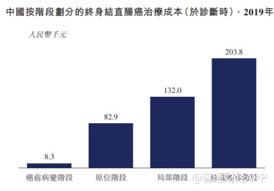 对于上亿的结直肠癌高风险人群而言,结直肠癌的治疗无疑是一笔巨大的潜在经济负担。据智通财经APP了解,结直肠癌症晚期治疗费用超过20万元,但如果在癌前病变阶段发现的话,不到1万元即可手术切除癌前病变,达到预防结直肠癌的效果,结直肠癌的早筛早诊早治具有显著的卫生经济学效应。
