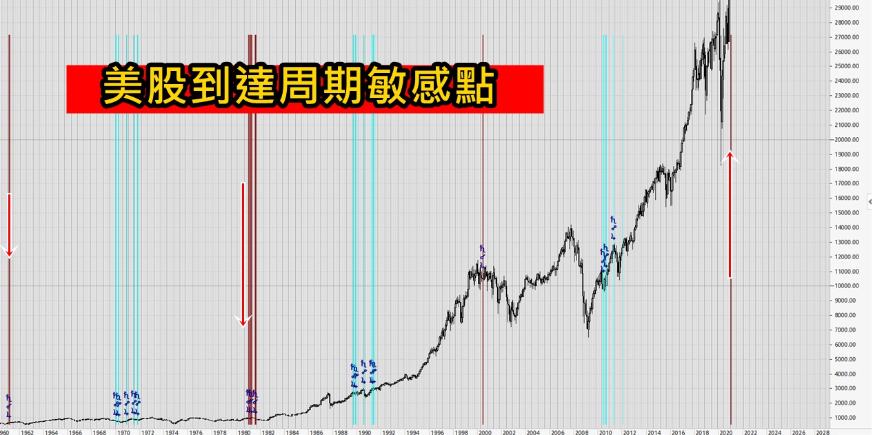 同时道指及恒指到达了一个20年一次的周期,此周期将准确时间为2020年12月21日。过去遇见此周期,如2000年后科网股爆破,1980年美国经济衰退,到1960年爆发美元危机,在国际金融市场上人们纷纷抛售美元抢购黄金。这一次相信股市可能都要留意未来两至三个月的时间,美股及港股的走势。