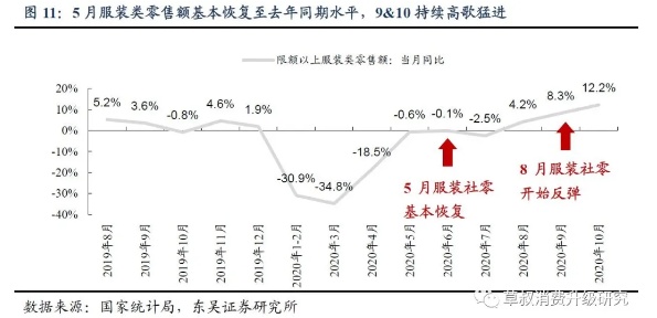 2020年初的冬装消费被卫生事件压制,年末冬装消费有望实现反弹。2019年冬装消费季受暖冬影响,需求释放有限;2020年1-3月受到卫生事件影响,春节这个主要的冬装消费时间点的需求被压制。“人不能连续两年没有新衣服”——消费者补充冬装的刚性需求使2020年底的冬装消费实现反弹,10月限上服装类社零总额同比增长12.2%。