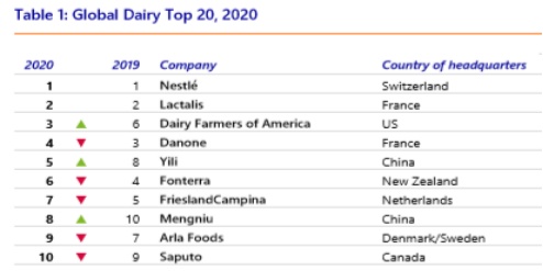 14天后的8月28日,荷兰合作银行发布了2020年“全球乳业20强”榜单,蒙牛上升两名跻身8强阵营,已连续12年入榜。