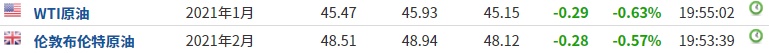 截至发稿,WTI原油跌0.63%,报45.47美元/桶。布伦特原油跌0.57%,报48.51美元/桶。