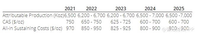 纽曼矿业还预计2022年、2023年黄金产量都在620万至670万盎司之间,2024年、2025年黄金产量都在650万至700万盎司之间。预计2022年AISC为850 - 950美元/盎司,2023年AISC为825 - 925美元/盎司,2024年、2025年AISC都在800 - 900美元/盎司之间。