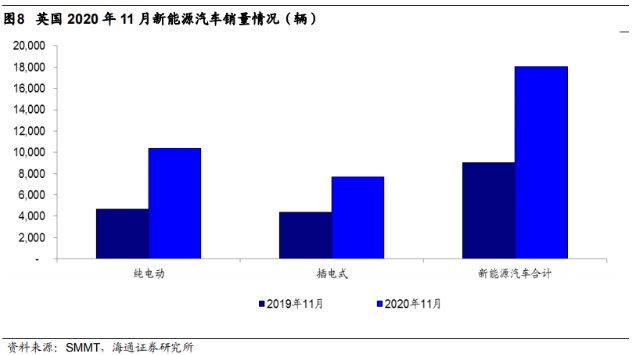 11月欧洲电动车销售呈井喷之势,德、法、英新能源汽车11月销售均录得超100%增长。