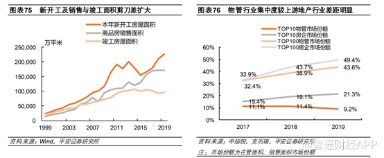 存量方面,据测算,2019年末存量住宅面积约330.9亿平米,远高于住宅物业在管面积(约165.1亿平米)。入驻尚未配备物业服务的存量盘,为物管企业实现规模述求的重要途径之一。