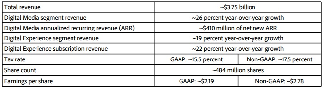 数字媒体部门营收为92.3亿美元,同比增长20%,其中创意业务营收为77.4亿美元,文档云业务收入为15亿美元。数字媒体年化经常性收入(ARR)增长18.5亿美元。