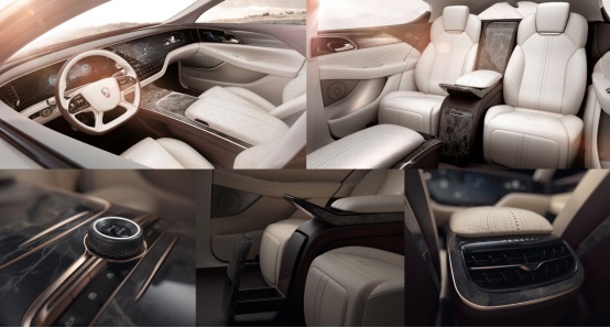 除了高颜值外,恒驰1内饰也彰显着超豪华、高科技的调性。例如宇航级的旗舰智能座舱、18向调节多功能按摩座椅、全球首创的超大三联屏、百度和腾讯的双生态5G互联技术等,奢华感、未来感十足。