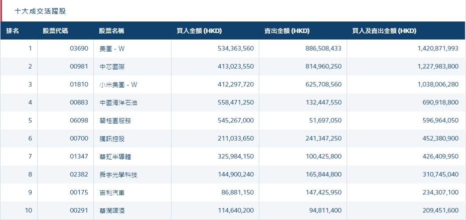 华虹半导体(01347)获净买入2.25亿港元。消息面上,中金公司称,手机主芯片出现明显缺货,预期缺货情况会至少延续到明年一季度。预计目前缺货主要发生在高通/联发科生产的手机主芯片及电源管理芯片、加工单价较低的显示驱动芯片,以及中高端安防芯片。看好受益于芯片涨价的华虹半导体等。然而同属半导体板块的中芯国际(00981)今日遭北水抛售,全天净卖出额达3.68亿港元。