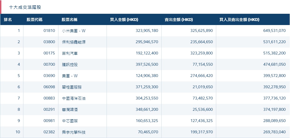 港股通(深)十大活跃成交股