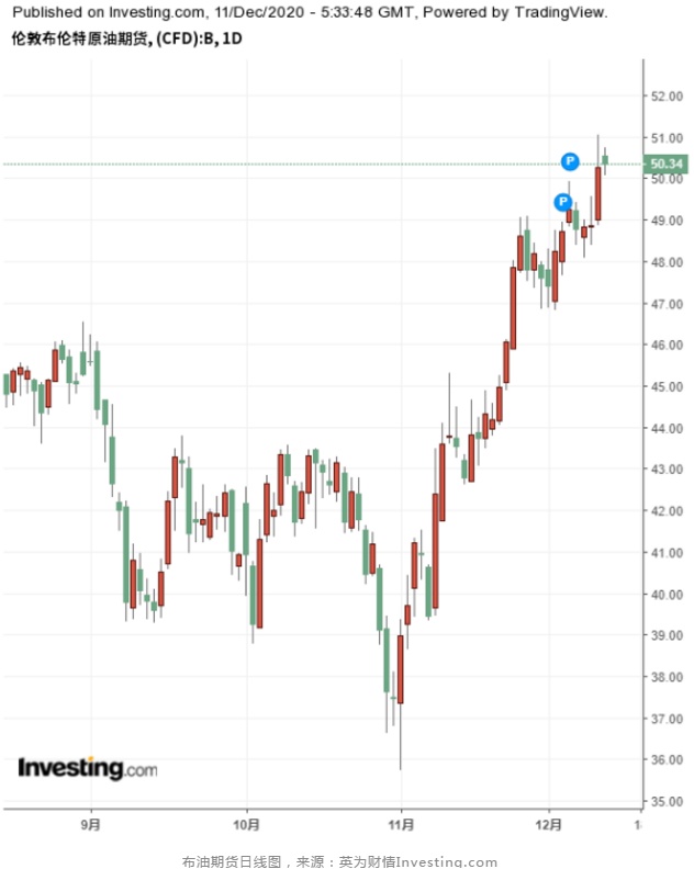 当涉及到需求时,市场似乎并不关心当前正在发生的事情,而是押注疫苗将改善未来的需求。周四,布油自3月初以来首次突破50美元。