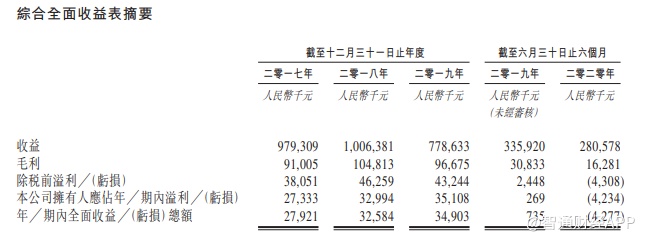 截至2019年12月31日止三个年度及截至2020年6月30日止六个月,收益分别为9.79亿元(人民币,下同)、10.06亿元、7.79亿元和2.81亿元。