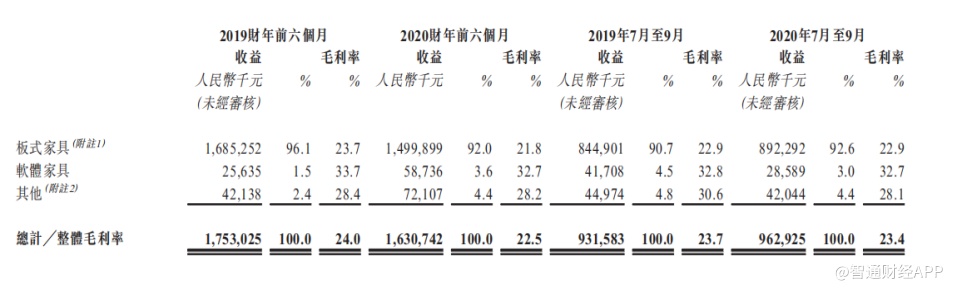 2020年上半年,受到公共卫生事件影响,汇森家居板式家具销售收入有所下滑,总收入由上年同期17.53亿元小幅下滑至16.31亿元。随着不确定因素相对缓解,公司三季度销售恢复势头良好,板式家具单季度实现8.92亿元销售额,同比增长5.61%,带动总体销售额增长3.38%。