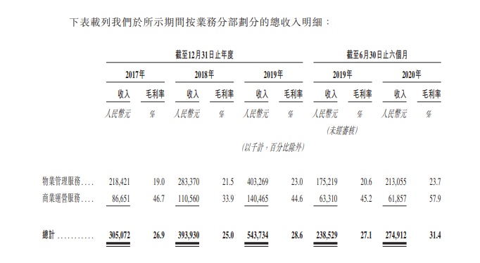 禹佳生活服务主要业务线包括:物业管理服务、商业运营服务。截至2020年6月30日,该公司为74个项目提供物业管理服务,在管总建筑面积约为13.2百万平方米。截至同日,该公司已订约为123个项目提供物业管理服务,已订约总建筑面积约为22.6百万平方米。同日,该公司为26个项目提供商业运营服务,在管总建筑面积为0.7百万平方米,截至同日,我们已订约为34个项目提供商业运营服务,已订约总建筑面积约为1.1百万平方米。