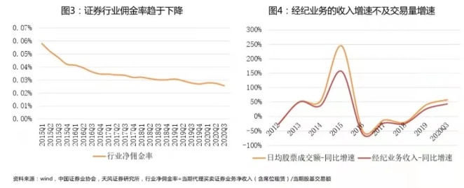 经纪业务收入:受到佣金率持续下滑的影响,2020年前三季度的增速不及交易量增速。我们预计2021年佣金率下滑的消极影响大概率会继续存在。