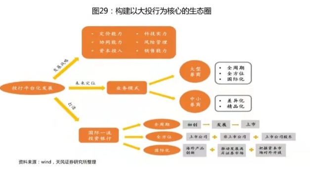 4)行业盈利驱动的转变意味着综合金融服务能力的重要性提升。我们判断发展机构业务需要较强的资产负债表管理能力(信用债违约事件预计将使得不同券商的杠杆率差距进一步拉大)、适应业务发展的组织架构(机构投资者需求多样化,跨部门协同要求高)、专业的人才队伍以及强大的IT系统等。