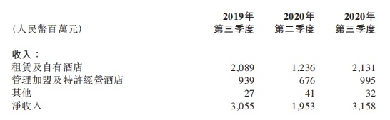 从收入结构来看,第三季度华住租赁及自有酒店的净收入为21.31亿元,同比增长2%,环比增长72.4%;管理加盟及特许经营酒店的净收入为9.95亿元,同比增长6%,环比增长47.2%;其他收入3200万元,同比增长18.52%。