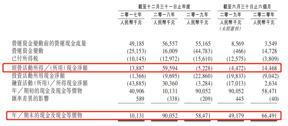 而除了营收净利表现波动之外,天晟集团的经营现金流也存有较大起伏。据招股书披露,该公司2019年经营现金流由2017、2018年分别净流入1388.7万元、5959.4万元,转为净流出522.8万元,期末现金余额也较期初大幅减少3158.1万元至5847.1万元。截至今年上半年,该公司经营现金流则又净流入1447万元,期末现金及现金等价物相应增至6649万元。