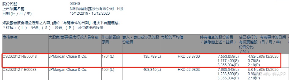 智通财经APP获悉,香港联交所最新资料显示,12月9日,摩根大通减持保利物业(06049)约13.58万股,每股作价53.37港元,总金额约为724.76万港元。减持后最新持股数目约为755.31万股,最新持股比例为4.92%。