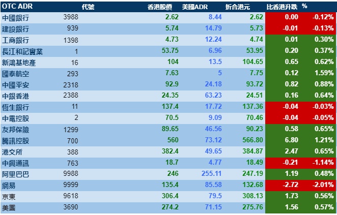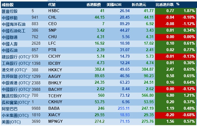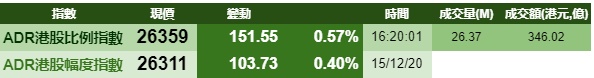 智通财经APP获悉,周二美股三大股指上涨,港股ADR指数跟随上涨,按比例计算,收报26359点,涨151.55点或0.57%。
