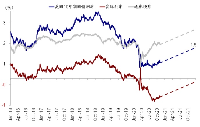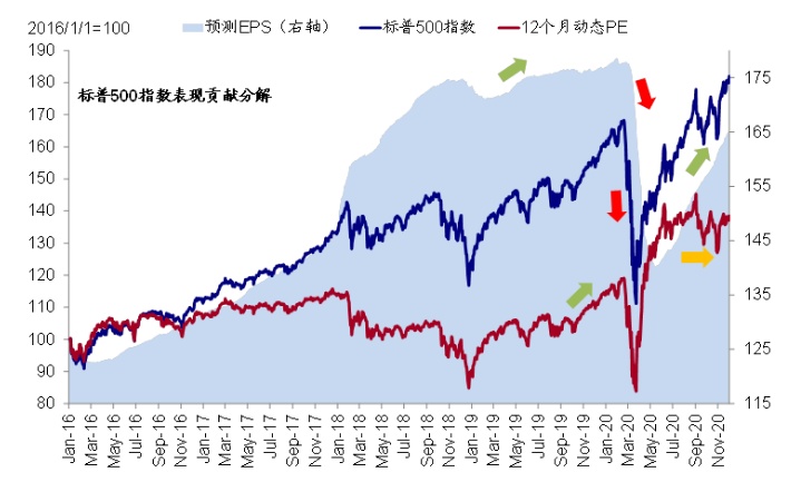 往前看,基本面因素依然是主导主要资产价格走势的关键,例如虽然维持资产购买但美债利率将在增长复工推进和通胀抬升的推动下继续走高(我们静态测算10年美债水平约为1.5%,而美股市场也将更多在盈利修复的推动下仍有上行空间(静态测算空间~7%,标普500指数~19%的盈利修复叠加~10%的估值消化)。