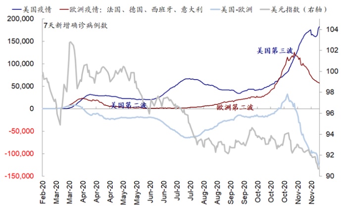 卫生事件、疫苗和财政刺激的进展将左右短期市场走势:1)卫生事件:如果仅看卫生事件的话,当前美国正在面临的第三波卫生事件严重程度要甚于以前过去一轮、对医疗资源的挤兑也愈发明显;新增、住院、ICU、死亡都早已超出3月高点。因此,如果没有11月以来多支疫苗积极进展的支撑,市场在这一背景下可能早已承压。2)疫苗:上周末FDA批准辉瑞(PFE.US)首支疫苗在美国使用,具有重要“托底”意义,特别是对市场而言。但从卫生事件实际防控看,疫苗“远水不解近渴”(最初疫苗分配将仅能覆盖美国人口的一小部分,大规模接种可能要到明年),采取更多防控措施尽快压平曲线依然是必要的,近期有包括纽约州在内的更多州加入更严格防控措施之列,这又会反过来拖累短期复工进展和经济修复,例如最新的首申人数和11月零售消费超预期下滑都反应了新一波卫生事件的影响。3)财政刺激:卫生事件不断升级也使得新一轮财政刺激的必要性和期待增加,近期国会关于新一轮抗疫刺激谈判仍在进行,但如果本周无显著进展的话,就可能要到明年初了。