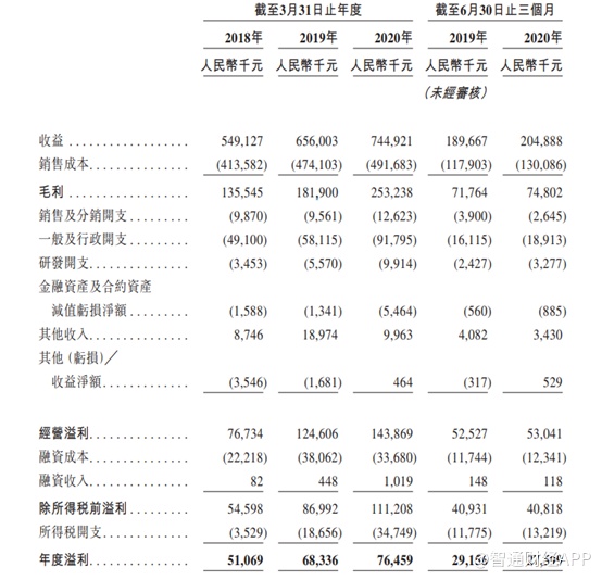 招股书显示,2018财年至2020年财年,达丰设备总收益分别为5.49亿元人民币(单位下同)、6.56亿元以及7.45亿元,年复合增长率为16.49%;期间内,公司净利润分别为5106.9万元、6833.6万元以及7645.9万元,年复合增长率为22.36%。近三年公司业绩平稳增长。