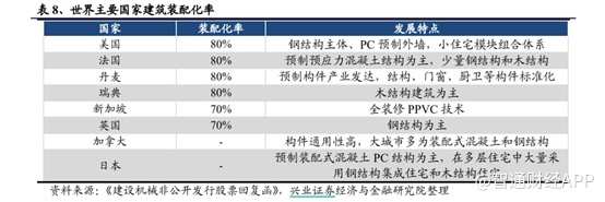 从全球装配式建筑的发展现状来看,欧美、日本、新加坡等发达国家和地区发展较早,现已进入成熟阶段。美国、法国、丹麦和瑞典的装配化率(装配式建筑占所有建筑面积的比率)高达80%。