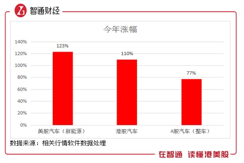 汽车板块持续发飙,美股新能源车板块今年涨了123%,中概股新造车势力“三兄弟”(蔚来、小鹏、理想)发力最猛,均成为美股亮眼的明星股,港股汽车股今年涨了110.5%,比亚迪(01211)涨幅高达3.6倍,而A股汽车整车涨了77%,长城汽车(601633)股价也翻了2倍。