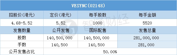 智通财经APP获悉,12月17日,VESYNC(02148)配售结束。配售招股价4.68-5.52港元,最终定价5.52港元,每手5520港元。