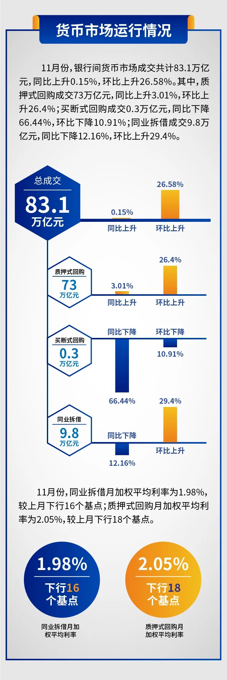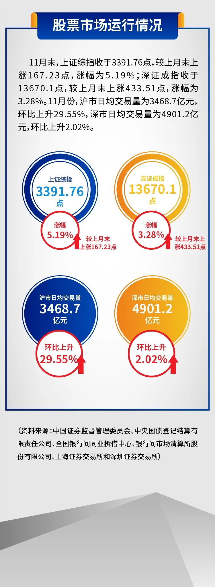央行:11月发行各类债券4.7万亿元,沪市日均交易量环比升29.55%
