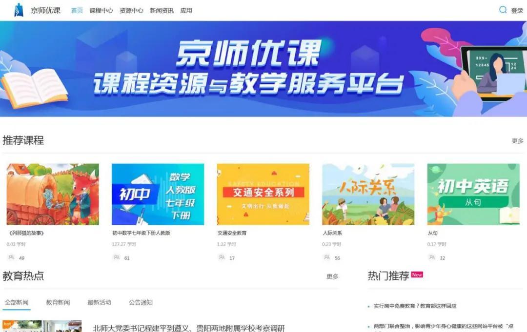 “京师优课”平台页面截图