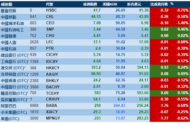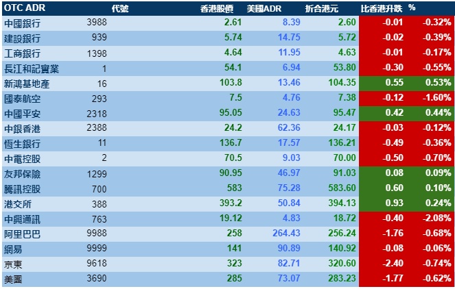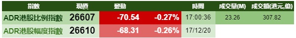 智通财经APP获悉,周四美股三大股指齐涨,港股ADR指数则出现小幅下跌,按比例计算,收报26607点,跌70.54点或0.27%。