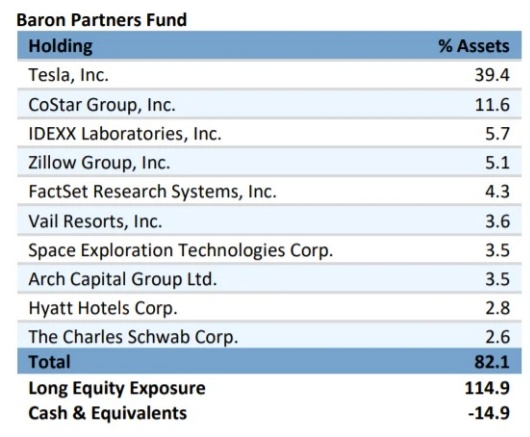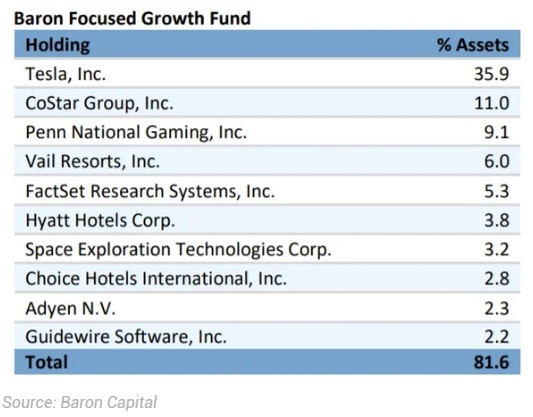 据悉,目前特斯拉占约Ron Baron旗下的Baron Partners基金总投资额的39.4%,占Baron Focused Growth Fund净资产的35.9%。