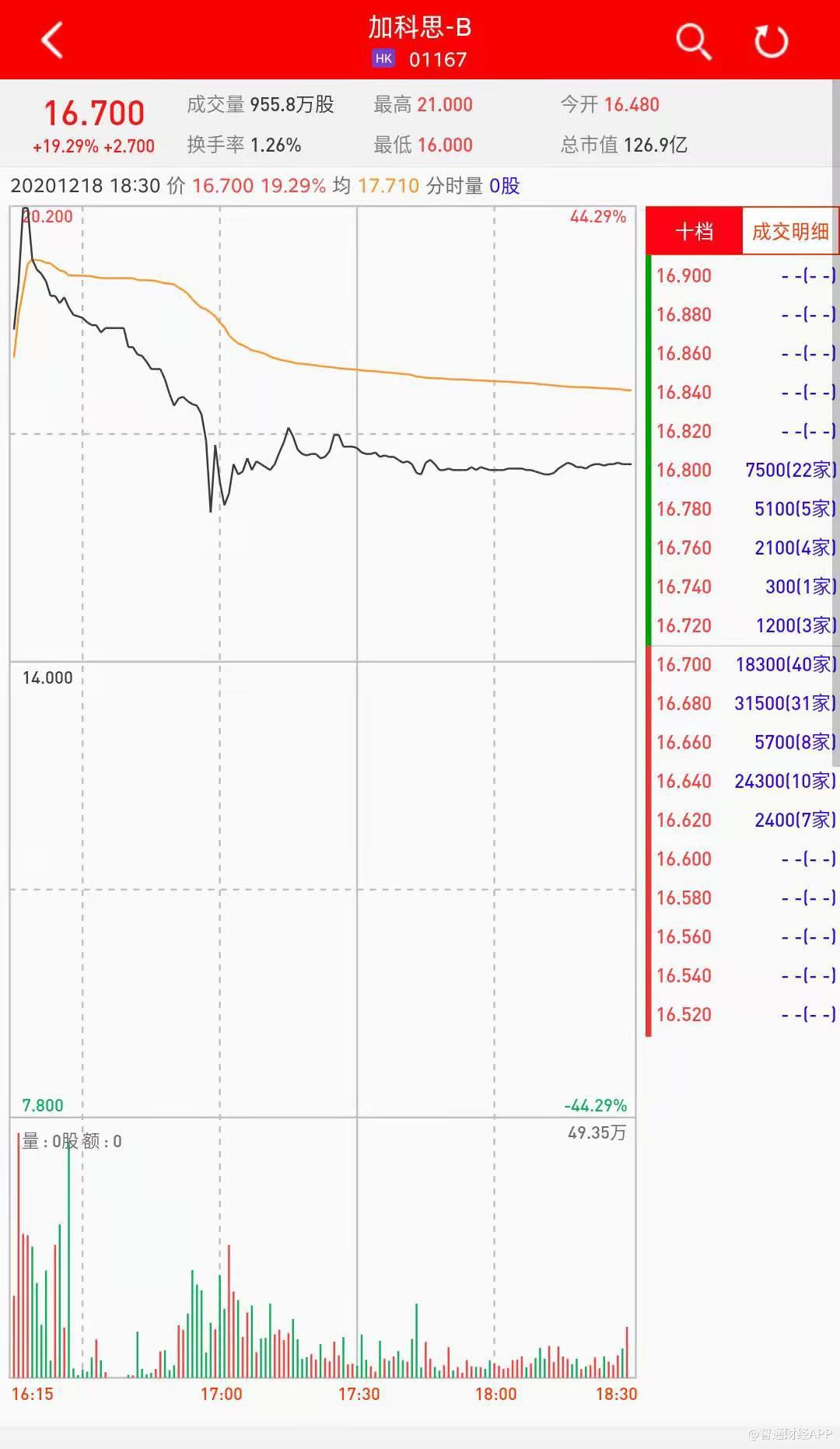 智通财经APP获悉,加科思-B(01167)将于12月21日(周一)在香港挂牌,截至暗盘收盘,利弗莫尔证券资料显示其暗盘报价16.7港元,较招股价14.0港元涨19.29%。每手300股,不计手续费,每手赚810港元。