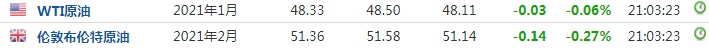 截至发稿,WTI原油跌0.06%,报48.33美元/桶。布伦特原油跌0.27%,报51.36美元/桶。