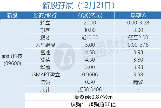 新股孖展统计 | 12月21日
