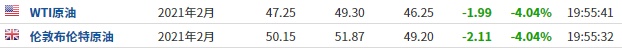 截至发稿,WTI原油跌4.04%,报47.25美元/桶。布伦特原油跌4.04%,报50.15美元/桶。