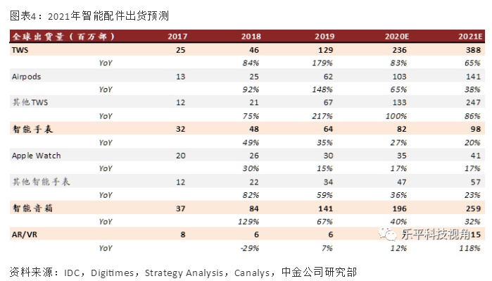 TWS保持强劲增长,VR/扫地机器人等新品类值得期待。我们预计2021年全球TWS耳机出货3.88亿台,同比保持增长65%,其中苹果耳机1.41亿台,同比增长38%。我们预计TWS耳机市场金额规模到2021年将达到手机的10%,成为电子元器件厂商的重要增长动能。除了手机品牌相继需求附带耳机的推动以外,主动降噪,以及未来有望新增的心率、血氧等健康监测功能是吸引客户购买的主要原因。除了TWS耳机以外,我们最近注意到,在Facebook(FB.US)的新款VR Oculus Quest 2,以及搭载激光雷达的拖扫一体机器人等新品的推动下,VR(2021年全球出货量约1,147万台),扫地机器人(2021年全球出货量约1,500万台)正成为手机(2021年出货量15亿台),电动车(2021年全球销量353万台)以外,推动电子元器件厂商2021年业绩增长的新动能,值得投资人持续关注。