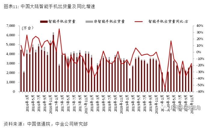 智能手机出货量不及预期;5G手机渗透不及预期。