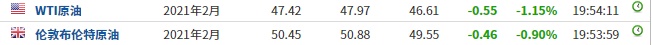 截至发稿,WTI原油跌1.15%,报47.42美元/桶。布伦特原油跌0.90%,报50.45美元/桶。