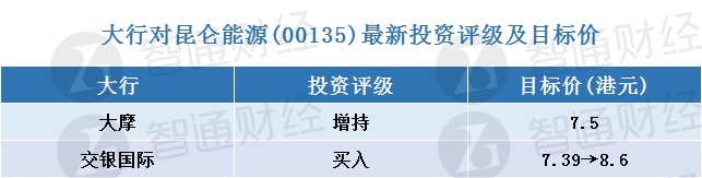 二、大行对昆仑能源(00135)最新投资评级及目标价