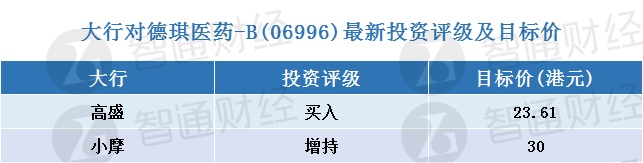 四、大行对德琪医药-B(06996)最新投资评级及目标价