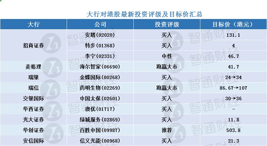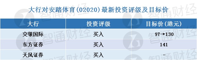 一、大行对安踏体育(02020)最新投资评级及目标价