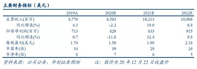 百胜中国估值及盈利预测:餐饮行业一般采取P/E估值法,美股快餐餐企平均估值在25X左右,因百胜中国16年至19年公司门店总数同比增速呈稳定增长趋势,历年同店销售基本稳定正增长,以及公司餐厅层面利润率和净利率较稳定,享受一定估值溢价。