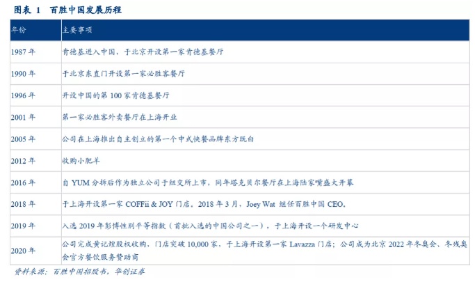 百胜集团(YUM.US)于1987年在北京开设第一家肯德基,同时也是第一家进入中国的西式快餐连锁餐厅。三十多年的发展历程中,公司陆续开设必胜客、东方既白、塔克贝尔等,同时收购小肥羊、黄记煌。2016年,百胜中国从YUM!Brands分拆出来,独立在纽约证券交易所上市,2019年、2020年连续两年入选彭博性别平等指数,并荣获中国杰出雇主认证。2020年,百胜中国位列《财富》美国500强排行榜第361位。