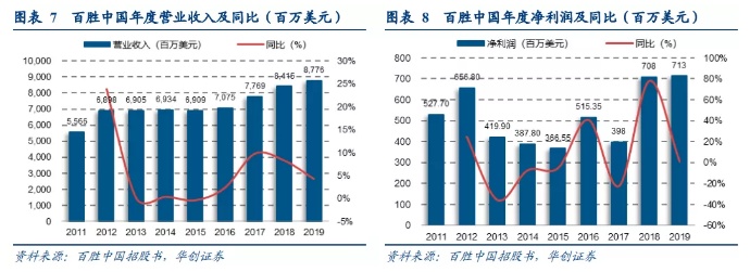 2019年百胜中国营业收入87.76亿美元,同比增长4.29%,归因于肯德基、必胜客同店销售额的增长,以及新店铺的大量开业;净利润7.13亿美元,同比增长0.71%(净利同比增速较低主要因为18年因收购无锡肯德基的非经常性利润影响)。2019年餐厅层面利润率为16.0%,较去年同期增长0.3pct。