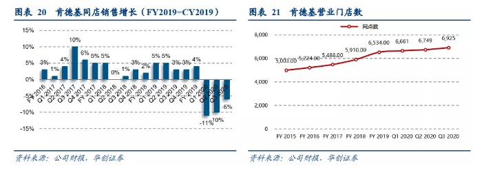 2. 同店增长稳定:除去今年卫生事件影响,16年至19年公司整体同店销售基本实现稳定正增长,其中最大品牌KFC品牌年轻化显著,同店持续强劲。