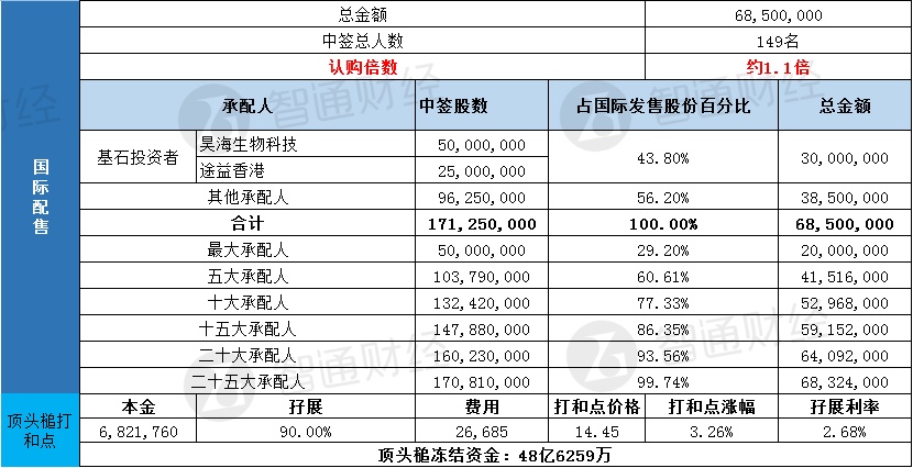 国际配售申购人数未披露,认购倍数约1.1倍。