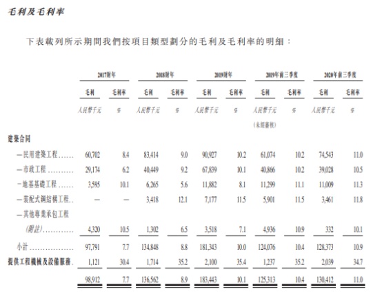 就该企业的民用建筑工程及市政工程部分,于2017财年,该企业的毛利率分别约为 8.4%及6.2%。于2018财年,其毛利率分别增加至约9.0%和9.2%,并于2019财年分别进一步增加至约10.2%和10.1%。2018财年和2019财年毛利率出现增加的主要原因主要是由于根据2018年4月4日颁布的优惠中国说法调整,适用于任何纳税人的应税增值税工程施工服务的增值税税率从11%调整为10%,自2019年4月1日起进一步下调至9.0%。