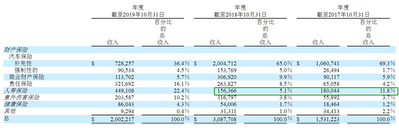 其实,2018财年是天睿祥业务快速发展的年份,不过,业绩表现却将行业特征展现得淋漓尽致。据招股书显示,在该财年中,天睿详增加了销售专业人员,并增加了营销活动,与此同时,采取了激进的广告活动,以吸引二手车经销商商店中的新客户。得益于上述措施的落实,天睿祥除人寿保险除外的各大产品均录得大幅增长。产品组合的大爆发,使得公司在该年录得308.77万美元收入,同比大增101.6%。